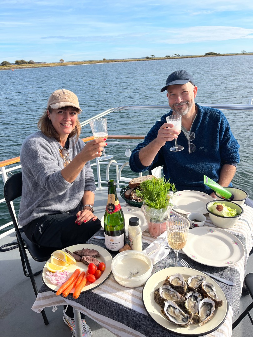 Agterdæk, bådens solterrasse, med plads til hele familien eller venner. Overdækket af cockpit-teltet som nemt kan slå ned når solen skinner.