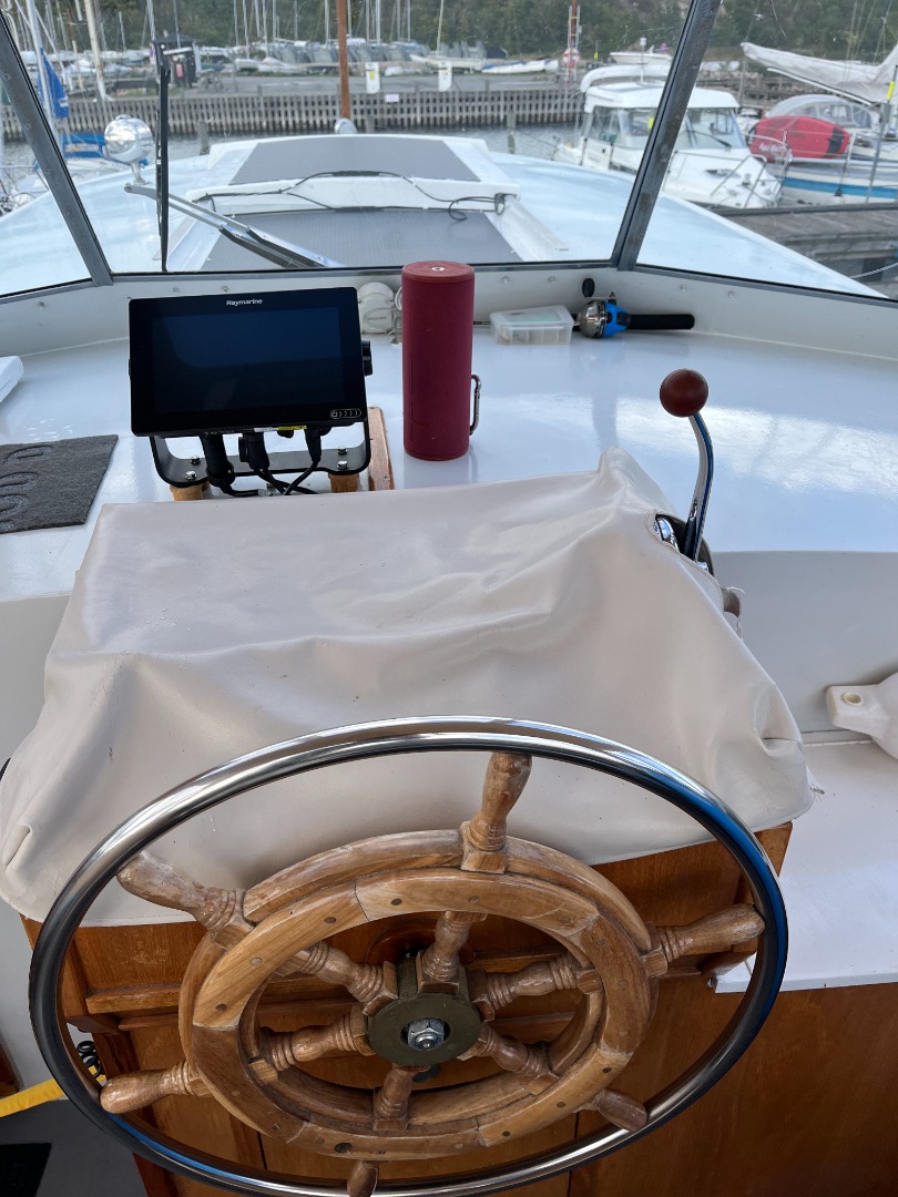 Cockpit, stort område med godt udsyn under sejlads. Her kan du styre i tørvejr eller tage cockpitteltet ned når solen skinner. Her er køleskab, bænke, grill og alle instrumenter du behøver til at sejle båden.