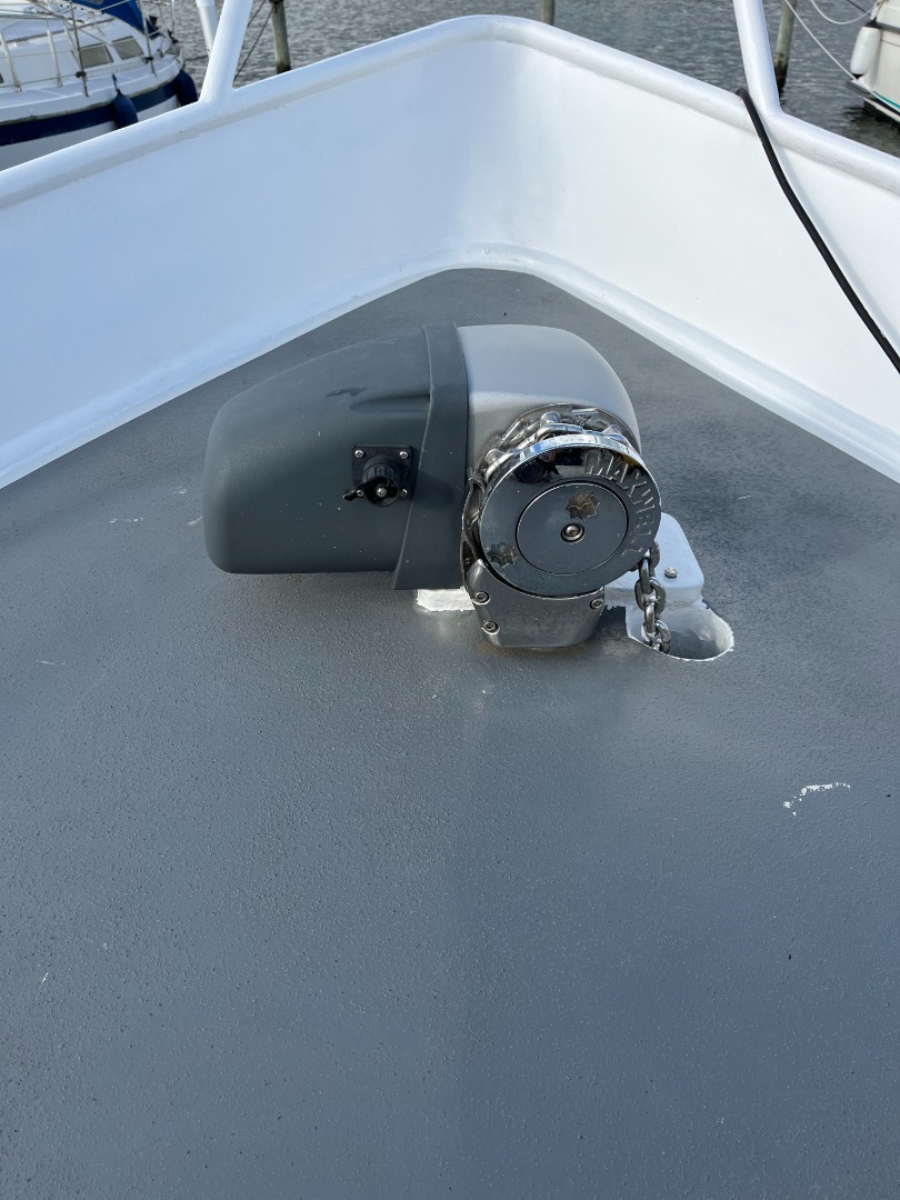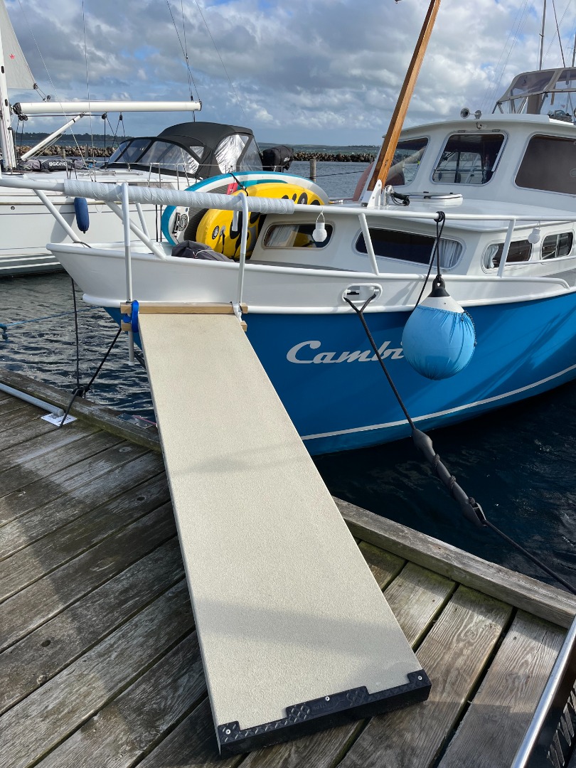 , med elektrisk anker og landgangsbro, når man ligger med stævnen med molen i havnen.